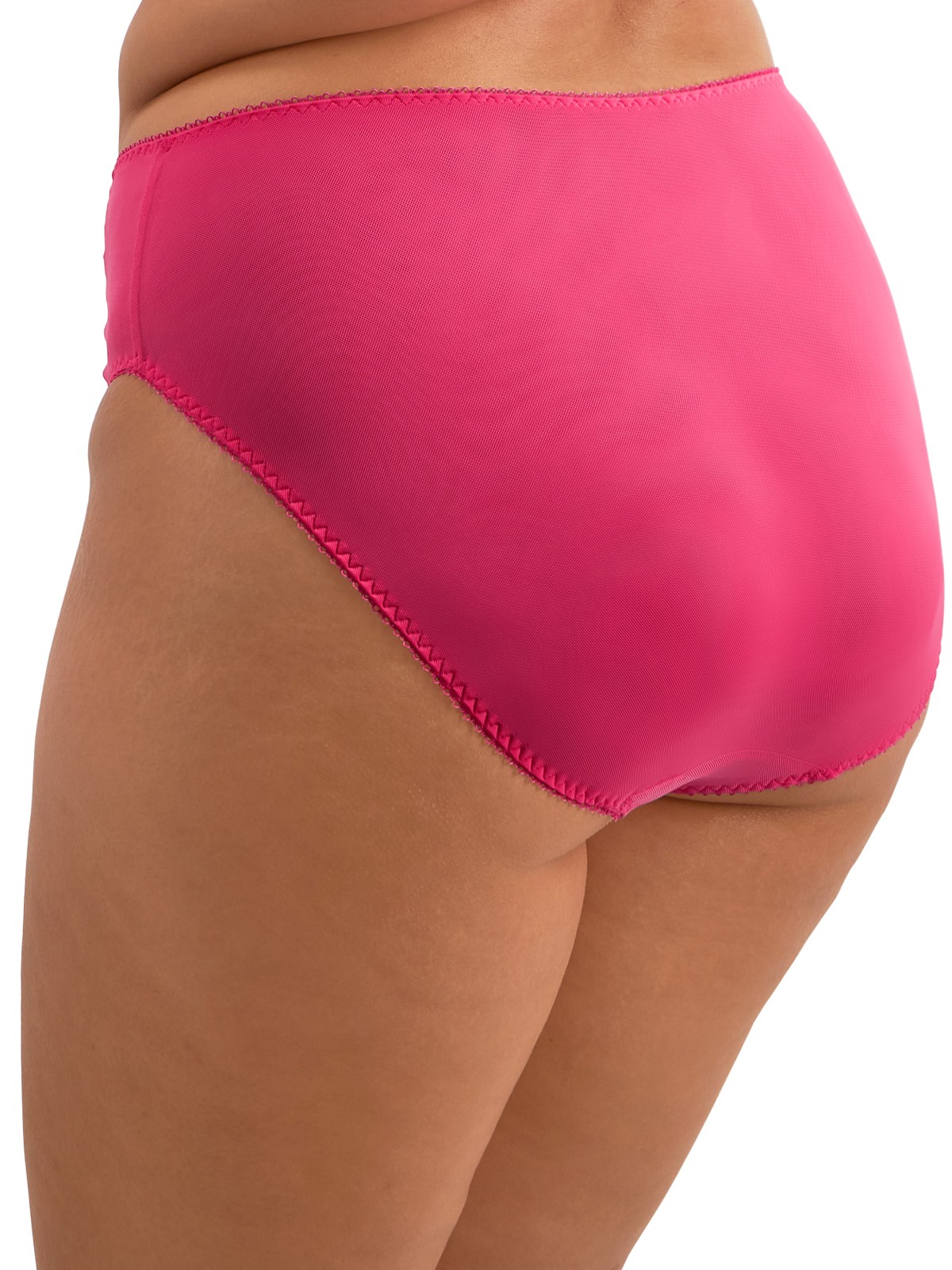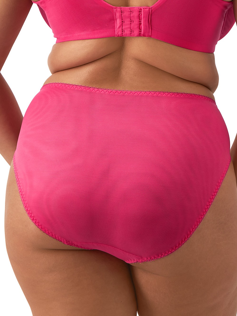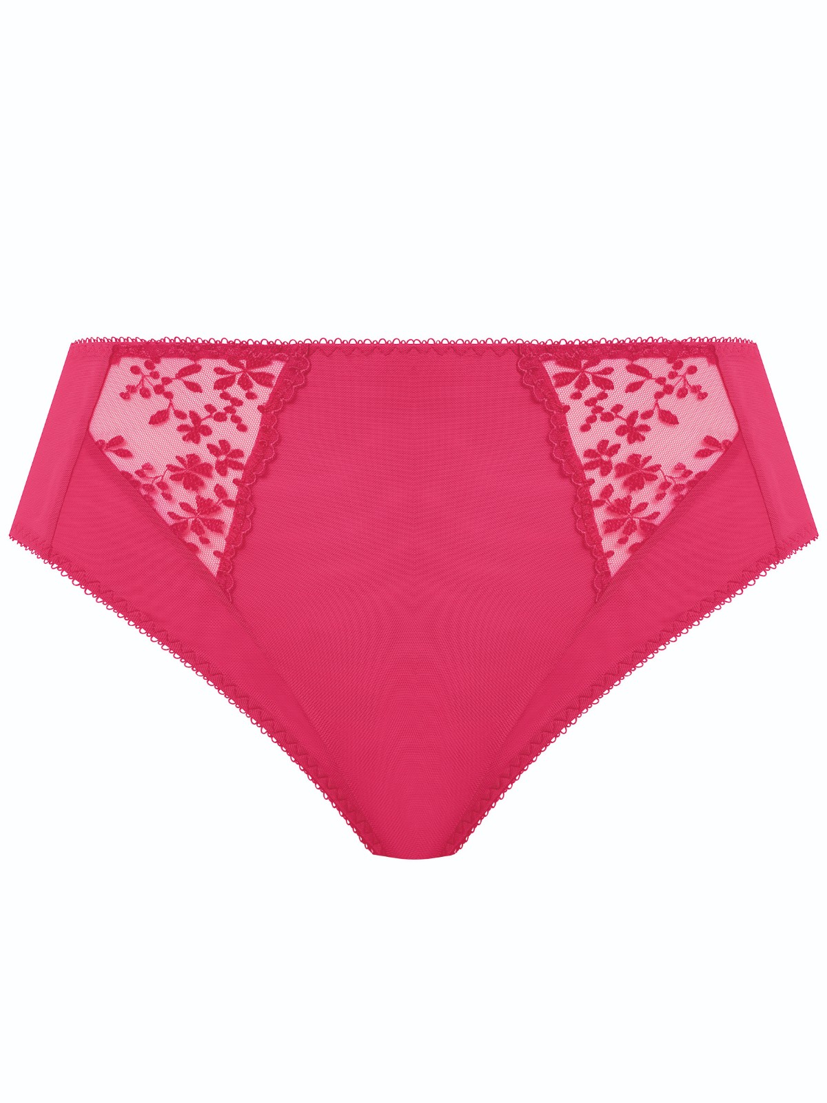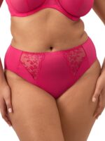 Hög tai trosa. Modellen är i dubbeltyg fram och bak. Spetsdelen har brodyr på nät som är lite genomskinlig.
